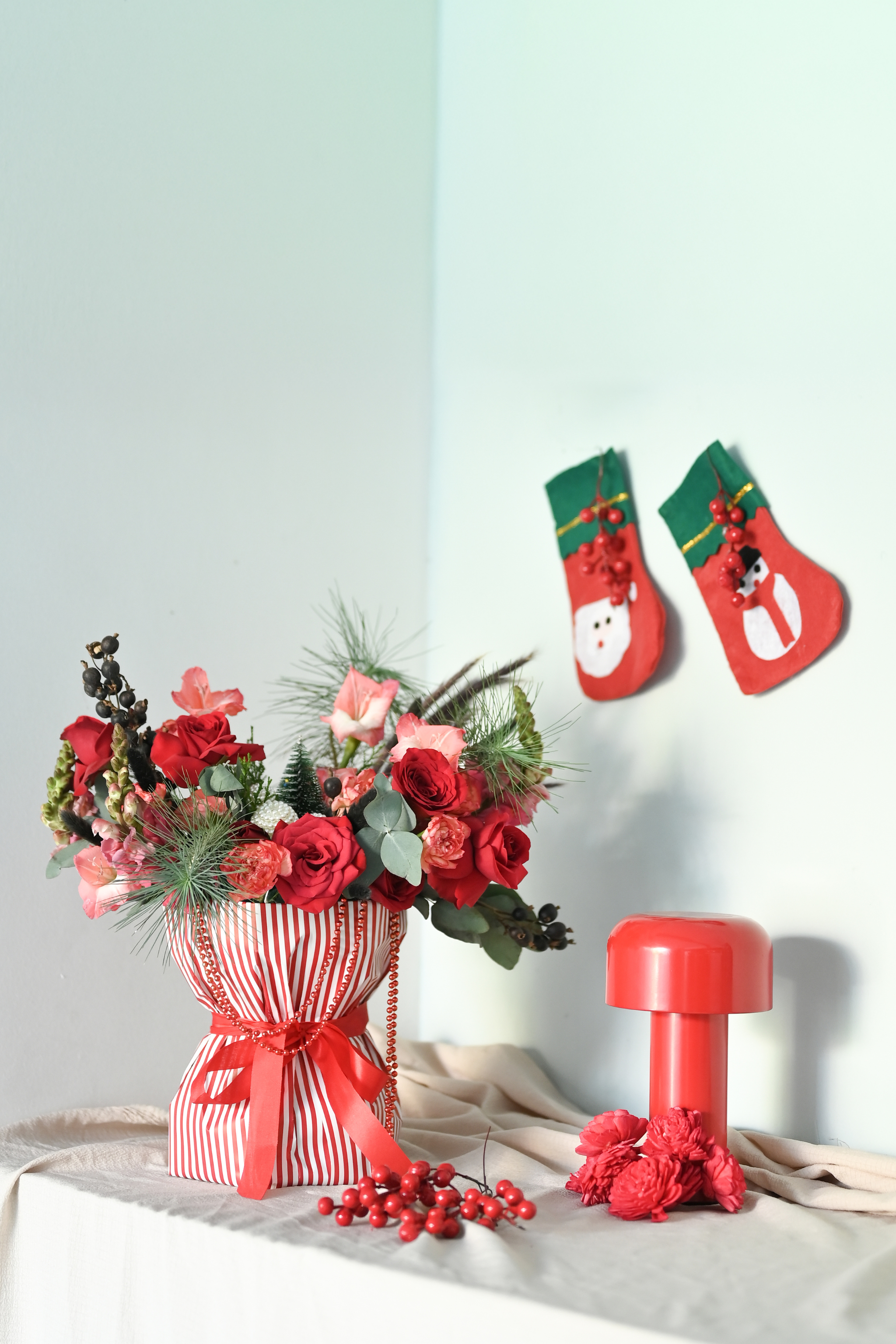 Red-y or not, here Christmas comes! If you’re all about making a statement, this monochromatic masterpiece is your match. We’re talking rich, velvety red blooms that scream "festive" louder than your Aunt’s holiday sweater. It’s bold, it’s passionate, and it brings an instant pop of holiday cheer to any corner. Perfect for the one who loves the spotlight—or just really loves red.